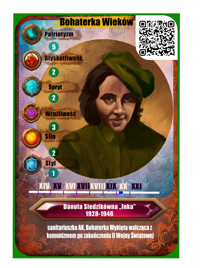 Danuta Siedzikówna, znana także jako „Inka” (1928-1946), była sanitariuszką w szeregach Armii Krajowej i Narodowych Sił Zbrojnych podczas II wojny światowej oraz w powojennym antykomunistycznym podziemiu. Urodzona w Guszczewinie, w rodzinie o patriotycznych tradycjach, już w młodym wieku doświadczyła okrucieństw wojny i okupacji.